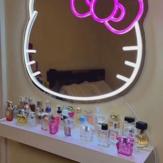 Answer 3: This mirror stands out due to its vibrant neon glow and high-quality LED lighting, which provides a flattering illumination for makeup application, selfies, and more. Unlike typical mirrors, it combines functionality with a trendy aesthetic, making it a stylish decor piece as well.